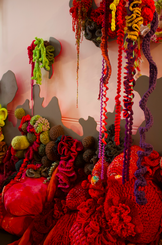 The "Golden Wattle Hookers" are mother and daughter duo Jill and Holly O'Meehan, whose collaborative art practice attempts to engage audiences through their use of mass crochet.